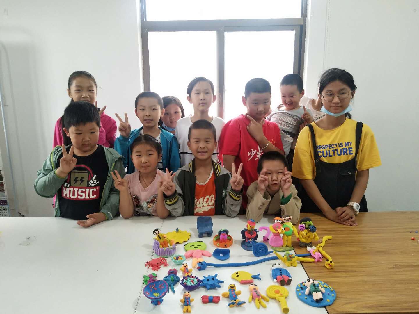 父爱有痕,岁月无迹。动手前,志愿者们简单讲解了父亲节的起源以及孝德故事,坐在下面的小脑袋们都听得无比认真,纷纷分享起和父亲的小故事,“我的爸爸,工作很忙,每天早出晚归的,我偷偷在床前给他留了字条,爸爸第二天就带我吃早饭还送我上学呢!”孩子们你一言我一语,用童趣的话语表达着对父亲的爱。随后志愿者们简单介绍首先介绍黏土的制作方法,让孩子们充分发挥想象力,用黏土刻画父亲的形象,孩子们若有所思,迫不及待的开始动手制作。“我的爸爸爱穿蓝色的衣服”“我的爸爸有一双大大的眼睛”“我的爸爸是超人!”小小的脑袋藏着无限的创意,不一会儿,“大作”纷纷出炉,一件件栩栩如生的泥像,凝结着对父亲的爱与感恩,孩子们表示:我要带回家,送给爸爸,跟他说一句,爸爸我爱你,父亲节快乐!