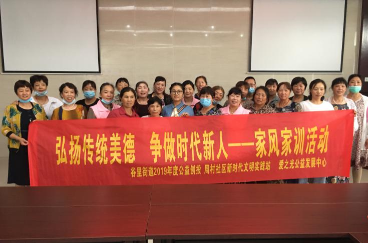 为积极培育和践行社会主义价值观,传承好家风,订立好家规,弘扬好家风,引导广大社区家庭弘扬中华优秀传统文化和树立良好的新时代道德风尚。2020年7月10日下午,周村社区联合爱之光公益发展中心在社区会议室开展以“家风家训分享会暨道德讲堂”为主题的活动,此次活动共计25人参加。